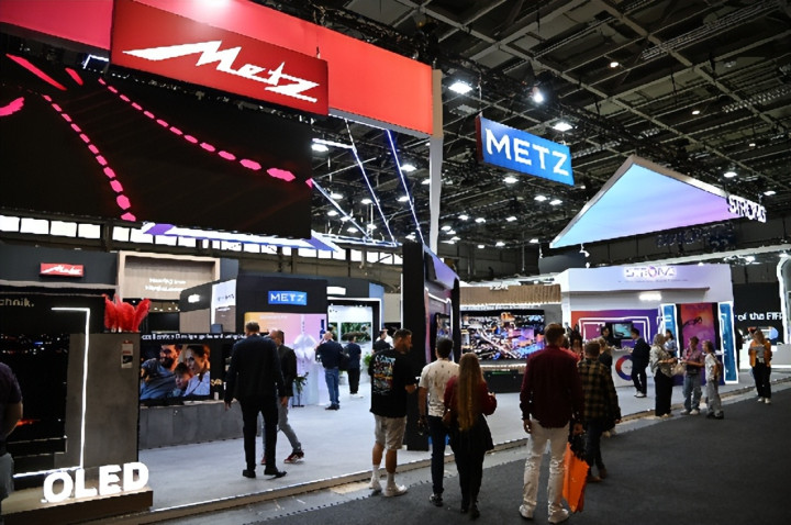 IFA 2025期间,创维旗下德国品牌美兹(METZ)作为主场参展品牌,获得柏林官方的高度关注。美兹77英寸PRIMUS电视以“精工之美,科技之魂”重新诠释“德国制造”的科技美学,持续引领欧洲高端电视市场潮流。其OLED产品矩阵涵盖LUNIS/AURIS等多个系列,尺寸覆盖42至65英寸,满足多元用户需求。